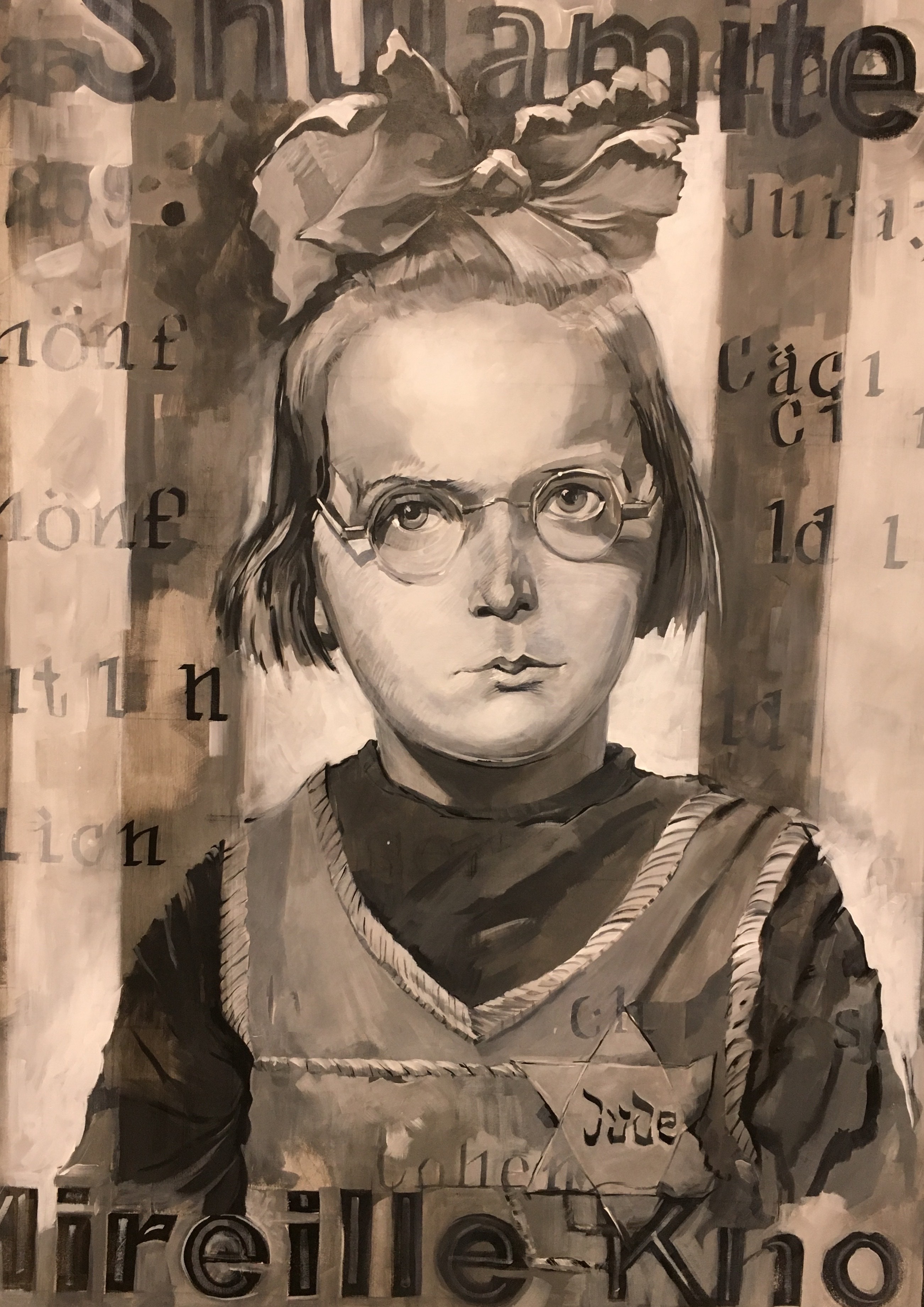 Creative freedom is an essential aspect of being human. Art is created as an emotional response and witnessing by victims who have survived traumatic times in the forms of monumental structures to fragile objects such as small drawings on scraps of paper or even paintings on found objects. Despite the odds, these types of artifacts survived the tragic events related to and leading up to the historical catastrophe known as the Holocaust and inform us about the human suffering of those times. Today, we have a chance to investigate, contemplate, and acknowledge our ideas and feelings through study and response to these works. I choose to create in the method and scale of my own artwork as a means of metaphor and to revel in the freedom in which we are able to create in today’s democratic society. I wish to pay tribute to these courageous artists and poets.