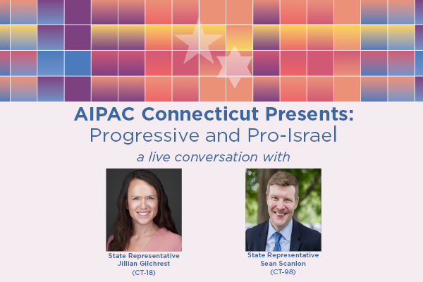 Please join the AIPAC Connecticut community for a live conversation with State Representative Jillian Gilchrest (D-West Hartford) and State Representative Sean Scanlon (D-Guilford). Representatives Gilchrest and Scanlon will share takeaways from their trip to Israel for the Progressive Leaders Educational Seminar, sponsored by the American Israel Education Foundation (AIEF), the charitable organization affiliated with AIPAC. They will also discuss how progressive values play a role in their pro-Israel activism.