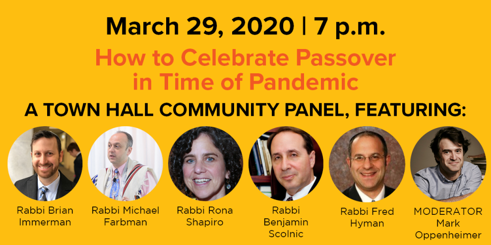 Coronavirus will complicate, but not stop Passover. Join our Community Rabbis for a FREE town hall panel discussion on how to celebrate the Festival of Freedom during these challenging times.