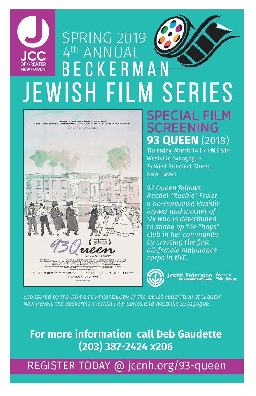 Sponsor: Women's Philanthropy of the Jewish Federation of Greater New Haven, Beckerman Jewish Film Series, Westville Synagogue