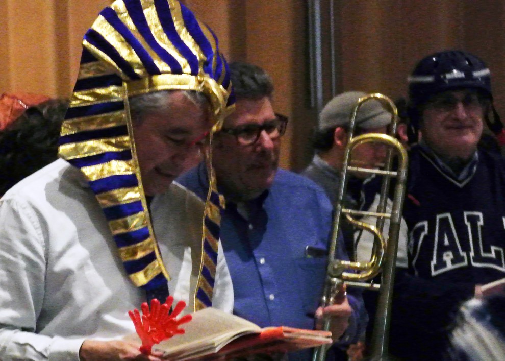 The Monday afternoon service is from 5:45p to 6:25p. The Megilla (Scroll of Esther) is read during the evening services (6:30p to 7:50p). Costumes for adults and children are encouraged. Groggers (noisemakers) will be available so that no one will have to hear the name of the Purim story’s villain.