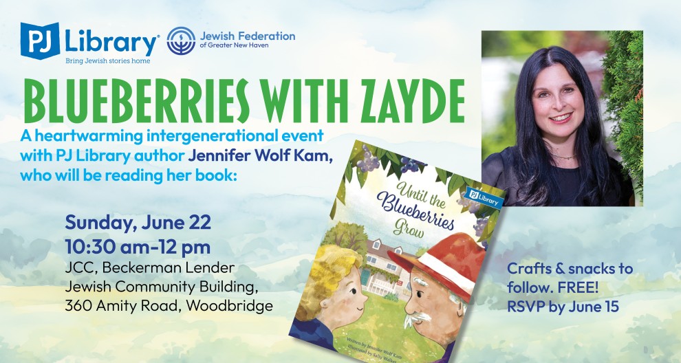 Join PJ Library author Jennifer Wolf Kam for a heartwarming intergenerational event, as she reads her beloved book Until the Blueberries Grow. This special story celebrates the bond between a child and their Zayde (grandfather)— and the memories made through every season of life. Crafts, snacks & more!