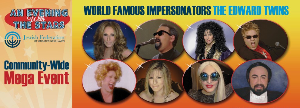 World-famous impersonators, the Edward twins, bring all your favorite superstars to life during this year's star-studded mega event. Come watch Sonny & Cher, Billy Joel, Elton John, Neil Diamond, Lionel Richie, Stevie Wonder, Ray Charles, Lady Gaga, Celine Dion, Rod Stewart, Bette Midler, Barbra Streisand, Andrea Bocelli, Tom Jones, and many many more.