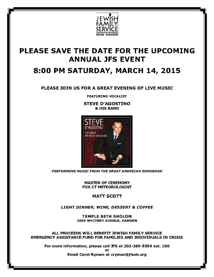 JFS will hold its annual fundraiser to help raise much needed funds for our food assistance program. The evening will include light food and musical entertainment.