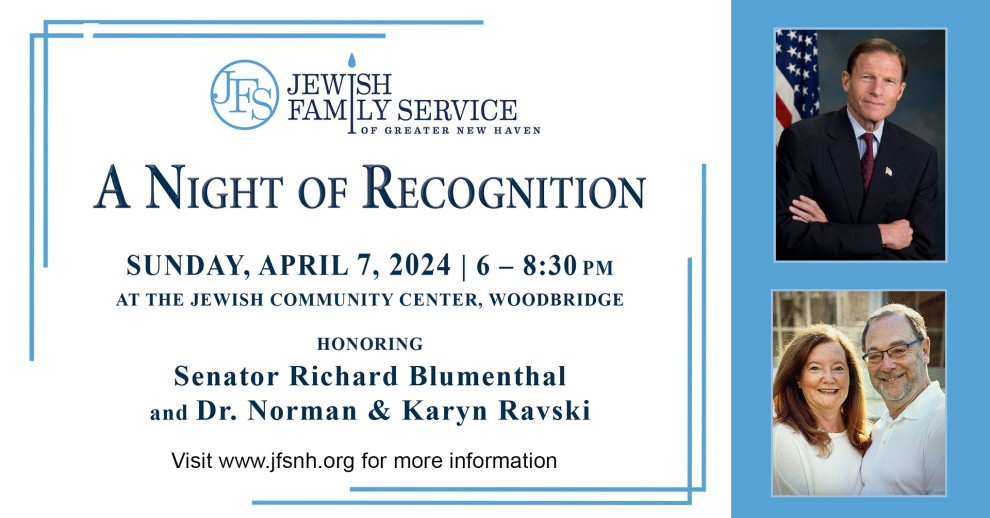A Night of Recognition (formerly Spring Celebration) is being held on Sunday, April 7th, from 6 pm – 8:30 pm at the JCC. This event raises much-needed funds to support our Mental Health Clinic, Aging Adult Services, Food Pantry, inclusivity efforts, and more. Tickets and sponsorships are available. Dinner, Wine, Coffee, and Dessert.