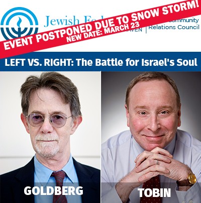 Is Israel locked in a tragic dispute between two peoples claiming the same land — or a global conflict between Western democracy and Islamist terrorism? Is partition into two states the only way to ensure Israel’s survival — or is it the surest path to ever-increasing bloodshed and possibly even endangering Israel’s survival? Jonathan S. Tobin, senior online editor and chief political blogger of Commentary Magazine, and J. J. Goldberg, editor-at-large of the Forward newspaper and former U.S. bureau chief of the Israeli news magazine The Jerusalem Report, will debate these and other critical issues concerning the State of Israel.