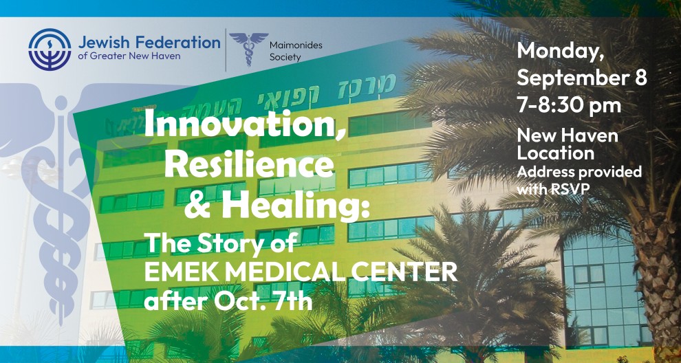 Calling all Healthcare professionals & graduate students: Join for an evening of networking and a panel discussion with visiting providers from the Emek Medical Center, located in New Haven's sister city of Afula, Israel. Join fellow healthcare professionals & graduate students to hear about the Emek Medical Center's cutting-edge care, even in the midst of crisis.