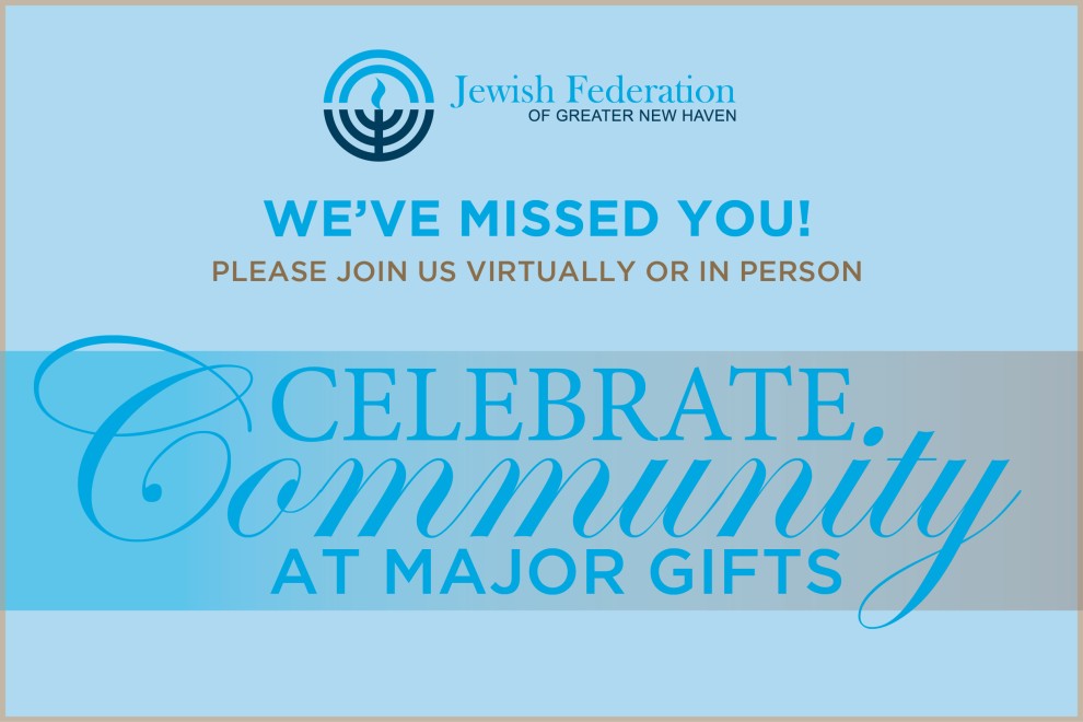 Register in advance. Please join us, virtually or in person, to celebrate community at the Jewish Federation Major Gifts Event. All households that pledge $5,000 or more to the Jewish Federation of Greater New Haven’s 2021 Annual Campaign are welcome to attend. Major donors are encouraged to set the tone as leaders of the campaign. Please consider your commitment in advance of the Major Gifts brunch. Join us outside, in person at a location in Woodbridge (address provided after registration).