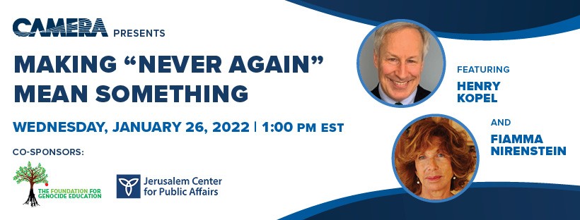 Sponsor: CAMERA, Jerusalem Center for Public Affairs, The Foundation for Genocide Education