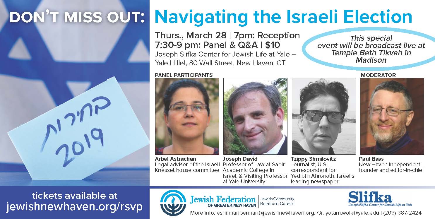 Join us for a panel discussion on the fast approaching Israeli Election, moderated by Paul Bass, New Haven Independent Editor in Chief.