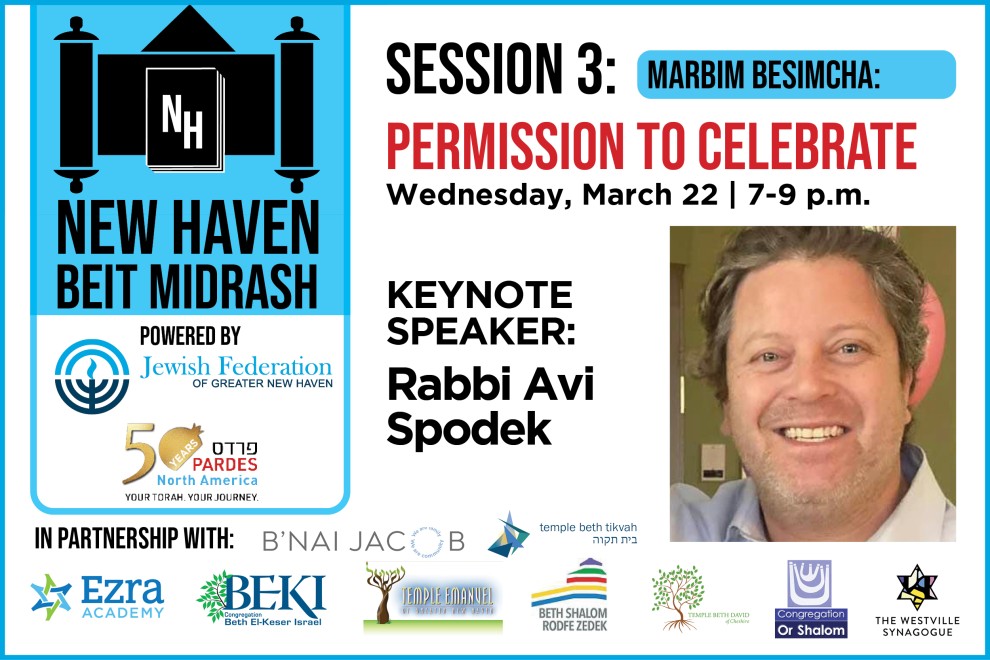 The New Haven Beit Midrash is presented in partnership with Congregation Beth Shalom Rodfe Zedek, Congregation B’nai Jacob, Ezra Academy, Beth El-Keser Israel (BEKI), Congregation Mishkan Israel, Temple Beth David, Temple Emanuel, Temple Beth Tikvah, Or Shalom and Westville Synagogue.