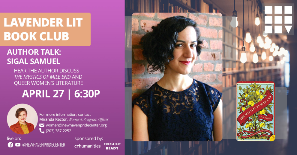 As part of our ongoing Lavender Lit Book Club, exploring LGBTQ+ women and femme authors, the Center sits down, virtually, with Sigal Samuel to discuss her writing and talk about the intersection of LGBTQ+ identity and religion. This conversation will be moderated by Miranda Rector, Women's Program Officer for the New Haven Pride Center.
