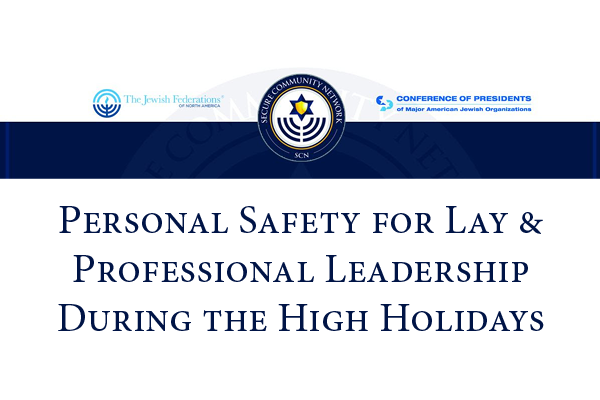 Secure Community Network, the national organization created by the Jewish Federation system and the Conference of Presidents of Major American Organizations, is offering a 4-part series in preparation for the upcoming chaggim.