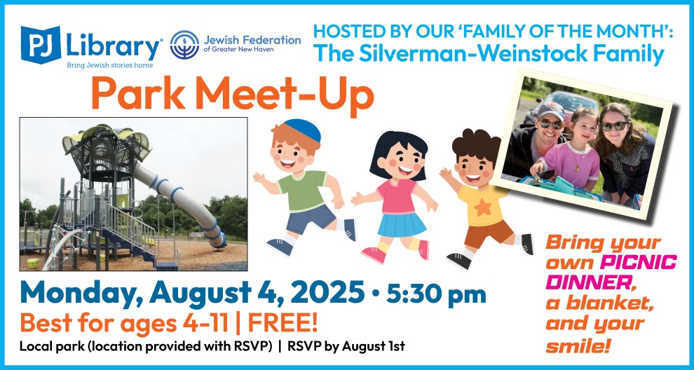 Come connect with other PJ Library families, meet new friends, and enjoy some fresh air and community spirit. All are welcome—bring a friend, a snack, a blanket, and your smile!