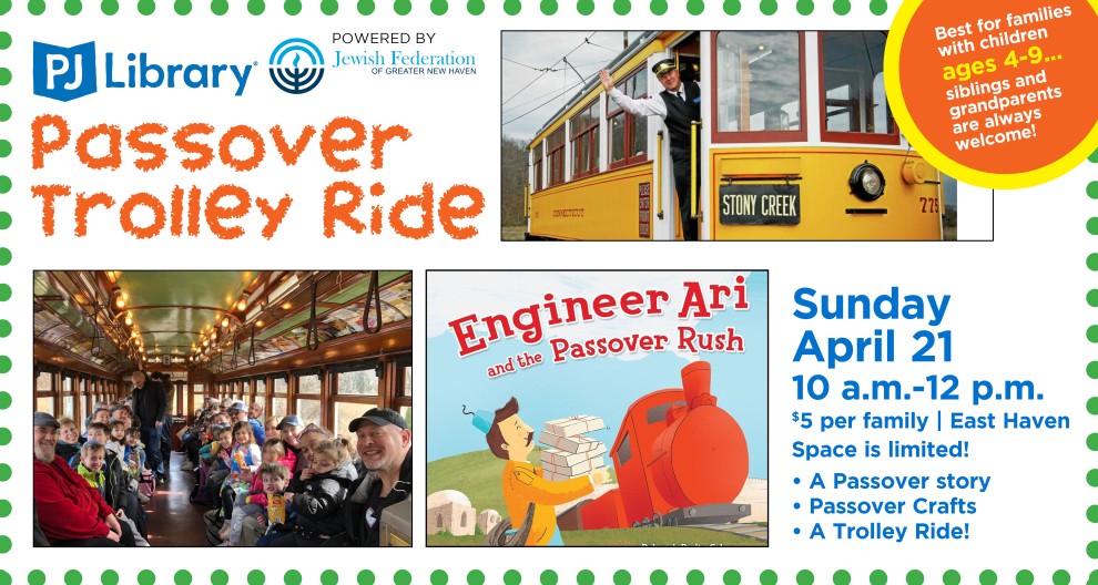 Enjoy Passover stories and crafts (and a trolley ride, while you're at it) at the historic Trolley Museum. Brought to you by PJ Library Parent Connectors.