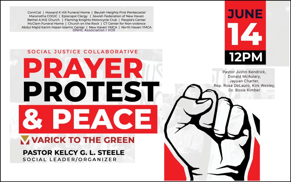 The group will hold a protest rally and peace march Sunday from Varick Memorial AME Zion Church, 242 Dixwell Avenue, New Haven to the Green and will demonstrate the anger throughout Greater New Haven over the killing of George Floyd and other African Americans by police and of systemic racism. Signs representing the Jewish community will be available. Find or call JCRC Director Eliraz Shifman-Berman at (475) 439-0061. She will be holding a sign with the Jewish Federation logo on it.