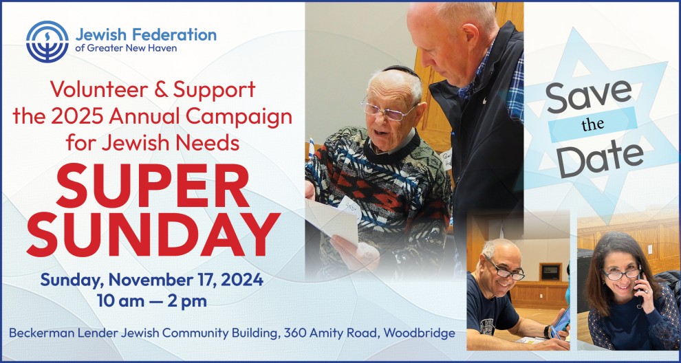 Join the Jewish Federation of Greater New Haven and its partner agencies in-person for Jewish New Haven's LARGEST One-Day Fundraiser. Volunteer to support the 2025 Annual Campaign for Jewish Needs!