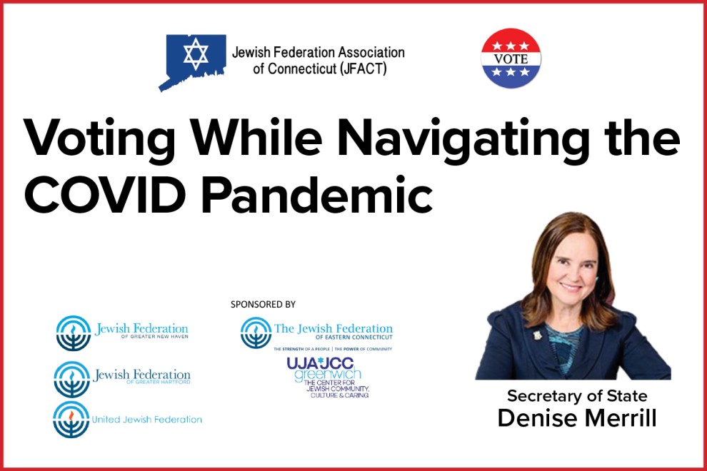 Voting While Navigating the COVID Pandemic Join JFACT to learn how Connecticut is preparing to vote this August and November at the same time as we are dealing with COVID-19. Join Secretary of State Denise Merrill to discuss how she is navigating the pandemic while still ensuring that everyone has the right to vote, as well as discuss ongoing attempts to erode voting rights.