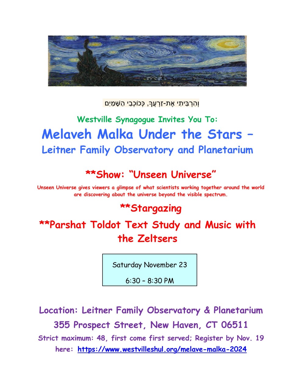 Join us for a Melave Malka Under the Stars at the Leitner Family Observatory & Planetarium