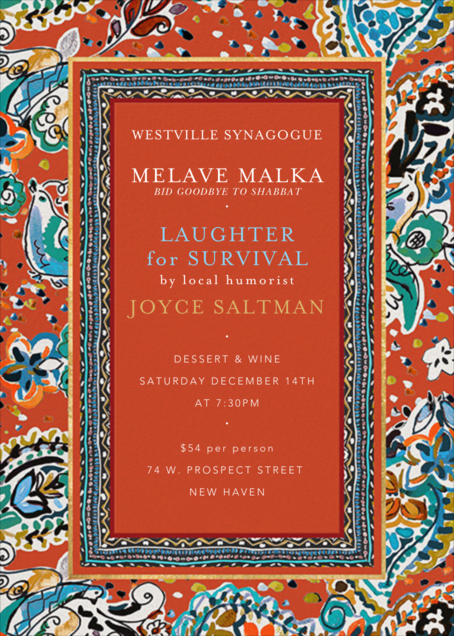 Please note that all events offered by the Jewish Federation, Foundation, and JCC of Greater New Haven may include photography. Photos taken at events may be used in our social media, websites, and in print materials to support the objectives of our organizations and to promote future events. We respect our patrons' privacy. If you do not wish to be photographed, please let us know at the event registration and welcome desk.