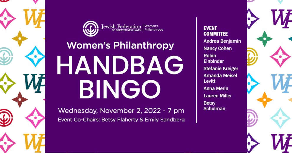 ENJOY dessert & drinks. RECONNECT with old friends and make new ones. PLAY bingo for the opportunity to WIN NEW HANDBAGS! Doors open at 6:30 p.m. GAMES BEGIN AT 7 P.M. Beckerman Lender Community Building (JCC) 360 Amity Road, Woodbridge COUVERT: $36 per person (includes dessert and game cards) EVENT SPONSORS: $100 (includes a ticket for you and a friend) RSVP by Oct. 24 at