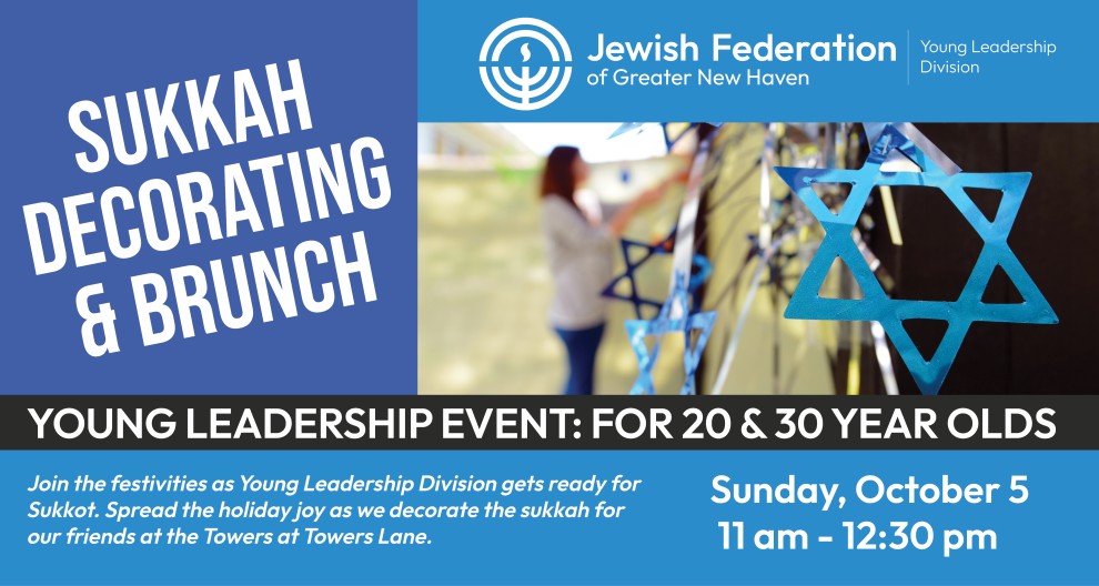 Calling all 20s and 30s in the Jewish Community! Join the festivities as Young Leadership Division gets ready for Sukkot. Spread the holiday joy as we enjoy brunch together and decorate the sukkah for our friends at the Towers at Towers Lane.