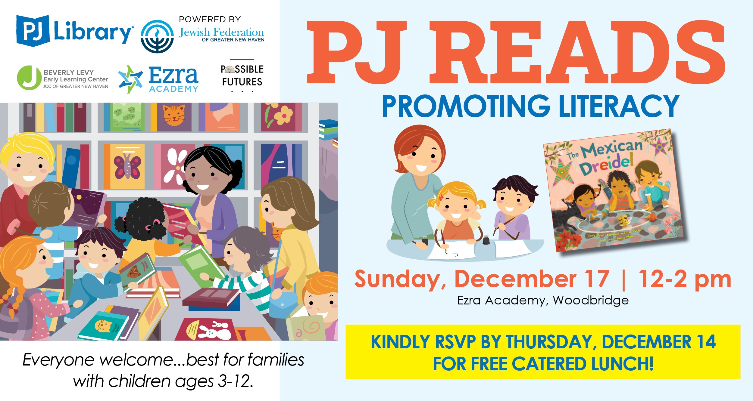 Join PJ Library at the Ezra Academy Green Book Fair as we reduce, reuse, recycle and give back. Featuring Ilan Stavans, co-author of The Mexican Dreidel. Keep the Chanukah fun going! Books will be available for purchase by local booksellers, Possible Futures. Bring used books for a book swap or to upcycle into art or jewelry and donate a new copy of your favorite book for children served by Jewish Family Services. Bring used markers for recycling. Enjoy a kosher dairy lunch catered from The Towers. This event will be most enjoyed by families with children ages 3-12.