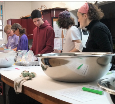 One Youth Commission volunteer, Rebecca Weiner, said she joined the pie-baking to provide a service to BEKI and the larger community and, in her words, because “to me pie-baking is a sweet way to bring home to our kids the many forms that Tikkun Olam can take.” Eva Shragis, who is a parent of former members of USY, has supervised the piemaking for the past few years. She said she views the project as a team building effort for everyone, in addition to a charity event, and she enjoys seeing new teens take on responsibilities within their community. She noted that this project is a great way to reach out to everyone at BEKI and beyond. “The pies I have bought through this program,” she said, “have made their way to Pennsylvania, Florida, New York, and California for our family Thanksgiving celebrations.”