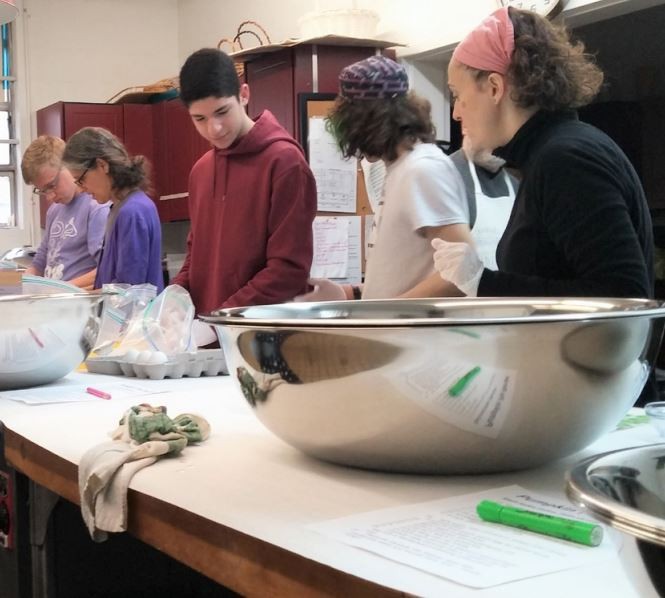 One Youth Commission volunteer, Rebecca Weiner, said she joined the pie-baking to provide a service to BEKI and the larger community and, in her words, because “to me pie-baking is a sweet way to bring home to our kids the many forms that Tikkun Olam can take.” Eva Shragis, who is a parent of former members of USY, has supervised the piemaking for the past few years. She said she views the project as a team building effort for everyone, in addition to a charity event, and she enjoys seeing new teens take on responsibilities within their community. She noted that this project is a great way to reach out to everyone at BEKI and beyond. “The pies I have bought through this program,” she said, “have made their way to Pennsylvania, Florida, New York, and California for our family Thanksgiving celebrations.”