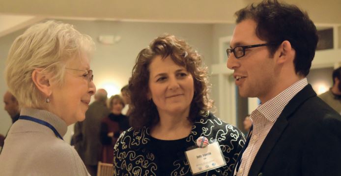 It was a beautiful community celebration of Hanukkah at the Latkes & Vodka event in Guilford, with Rabbi Yossi Yaffe and Rabbi Stacy Offner in attendance and live music by the David Chevan Quartet. Above, Deborah Rutty, of CBSRZ, chatted with Jewish Federation of Greater New Haven CEO Judy Alperin and Brian Levy, the Federation’s Director of Outreach, Engagement and Community Relations.