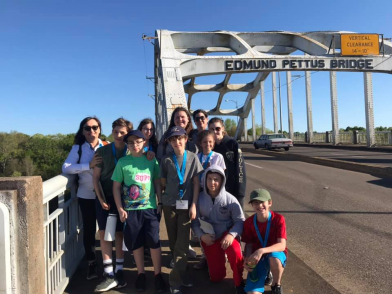 The social justice curriculum involved Ezra Academy’s sixth grade studying the American Civil Rights Movement and participating in a subsequent learning journey to Birmingham, Montgomery and Selma in Alabama. They are pictured above on the Edmund Pettus Bridge in Selma.