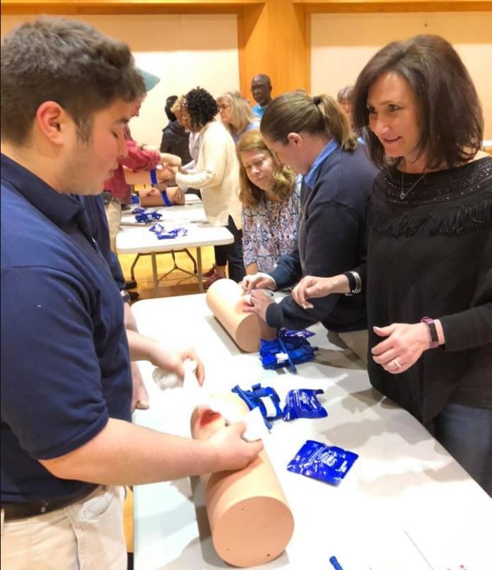 Safety and security of the Jewish community is of primary importance to the Jewish Federation of Greater New Haven, which empowered a community security committee chaired by Evan Wyner to review protocol and make recommendations to enhance efforts based on national-level data and research.. The Federation conducts an ongoing series of training to advance safety and security knowledge. Recently "Stop the Bleed" training was provided to JCC, Federation and Foundation staff, agency and synagogue leadership and local law enforcement. Stop the Bleed is a 90-minute course including a presentation and hands on practice in pressure application, wound packing and use of tourniquets. Training was led by and in collaboration with Yale New Haven Hospital and the Woodbridge Police Department.