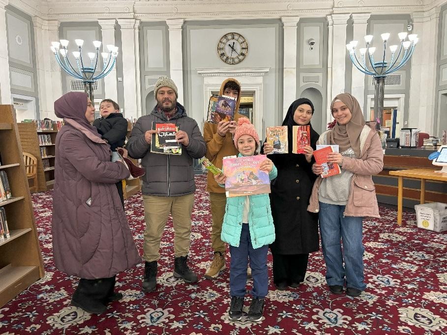 The family went to the Main Library in New Haven this week and everyone (except the baby) got library cards. The photo shows their delight in being able to check out books in English and in Arabic. We hope they will return often to the library, which is in walking distance from their home.