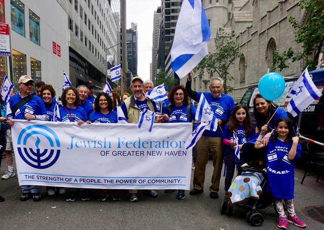 The leadership of Rabbi Alvin Wainhaus, of Congregation Or Shalom, and Jewish Federation of Greater New Haven Board member Deb Gaudette led to a strong showing from New Haven. Wainhaus, who has spearheaded New Haven Jewry’s participation at the parade for more than a decade, explained his passion for the event: “As members of American society, we live in a time of increasing divisiveness and partisanship. But this annual event allows us to celebrate a feeling seldom experienced these days: the feeling of unity – specifically, Jewish unity. Growing up in my Yiddish-speaking neighborhood, I’d often hear the aphorism: “Vos mir zaynen, zaynen mir, ober Yiden bleiben mir” or “What we are, we are, but beneath our differences, we’re all Jewish.” Well, the Israel parade brings us together every year to celebrate that wonderful and important message: Whether we’re Sephardic or Ashkenazic, religiously observant or non-observant, Republican Jews or Democrat Jews, we are one people! Indeed, I’ve always believed that our purpose, since the birth of our faith, was to broadcast G-d’s dream of global unity. But unity begins at home; and that’s why I love the Israel parade!”