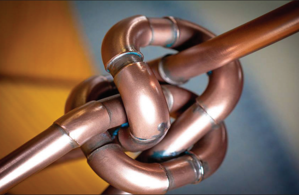 The show has special significance for Boro because the synagogue is the repository of a Memorial Light celebrating the memory of his wife of 48 years, Emily Seward Boro. A period of sadness and depression that followed her passing in 2013 acted as a catalyst, Boro says, fueling new creativity culminating in his “Musical Master Works” and “What’s Knot to Like” series. Ten to 15 works of aluminum, steel, and copper from these series, plus a few larger pieces, will be on public display for the first time. Boro credits his interaction with CBSRZ’s designer, the celebrated artist Sol LeWitt, with firing his creative imagination at a young age. “I found LeWitt’s extensive range of artistic expression extremely stimulating,” Boro says. “He inspired me and challenged me to broaden my vision, which resulted in applying my art education to the creation of architecture. Having my sculptures exhibited here has special meaning for me.”