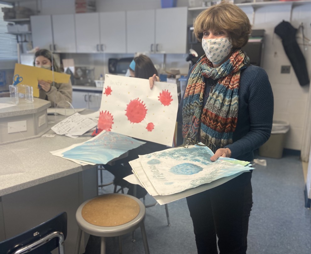 “There is such a buzz in our classroom that Dr. Waynik peeks in to see if we are six feet apart or tearing up the lab,” describes new Ezra Academy Science Teacher Willa Ridinger. The Head of School invariably finds animated students collaborating on projects, such as designing valves to prevent the backflow of blood (marbles) from the atrium to the ventricle.