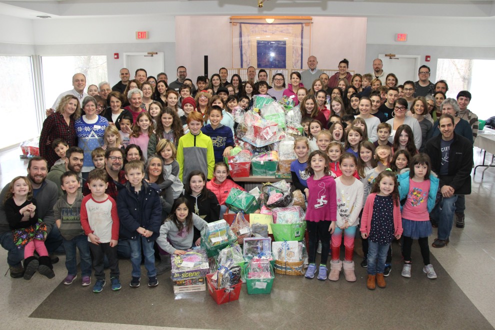At Hannukah, TE’s religious school students and their parents create hundreds of gift baskets for children at Jewish Family Services, Fairhaven Community Health Center, and others.