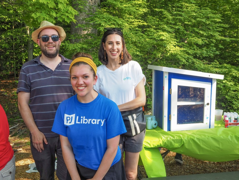 This past May, Ezra Academy and Congregation B'nai Jacob celebrated the installation of their new "Little Free PJ Library," a collaborative project between the two organizations and PJ Library of Greater New Haven. The library box was built and painted by Jewish Teen Education (JTE) and Ezra. Located on the property shared by Congregation B'nai Jacob and Ezra Academy, the book exchange will be stocked with PJ Library books and will function on a "take one, leave one" basis. Families were encouraged to bring a gently used PJ Library book for a book swap and all of the extras were added to the library. Other family-friendly activities included bubbles, music, face-painting, “kindness rock” art projects, family bingo and a story walk.