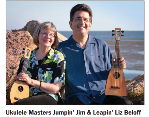 Congregation Beth Shalom Rodfe Zedek (CBSRZ) Music & More 11th season kicks off on Sunday, March 24, with a special ukulele concert and workshop event, “Uke Can’t Play Ukes Without U,” presented by world renowned ukulele master Jumpin’ Jim Beloff and joined by his wife Leapin’ Liz. The program starts with a workshop at 2 p.m. for non-players and beginners, followed by the concert at 3:45 p.m. featuring Jumpin’ Jim, his wife Leapin’ Liz, and a bass accompanist.