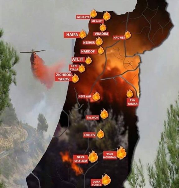 - In addition to Haifa, major fires also spread in Zichron Ya’akov, Bet Meir, Nataf, Halamish, Dolev, Har Halutz, Ya’ad and Gilon.