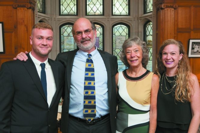 Professor James J. Silk, center, with his son Jonah, wife Jean, and daughter Kira. Silk, 70, of New Haven, was honored recently as the first Binger Clinical Professor of Human Rights at Yale Law School, where he teaches at the Allard K. Lowenstein International Human Rights Clinic. He is also the Director of the Orville H. Schell, Jr. Center for International Human Rights. The dean of Yale Law School said that Silk is considered the “dean of clinical human rights work in the U.S.” Silk is also the husband of the Jewish Federation of Greater New Haven’s Refugee Settlement Coordinator Jean Silk.