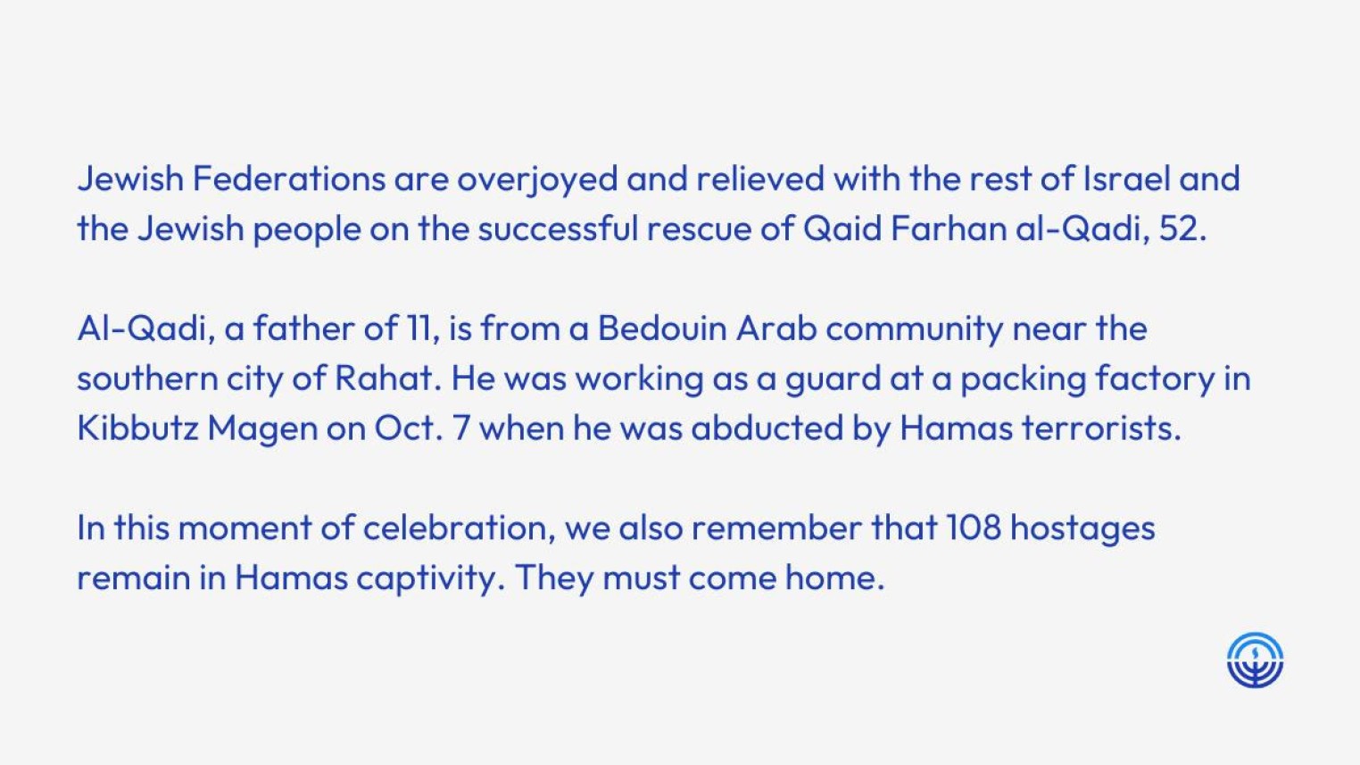 Collective allocations decisions are made by Jewish Federations of North America’s Israel Emergency Campaign Allocations Committee, which meets regularly to discuss ongoing needs and review allocation proposals.